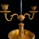 Lampe bouillotte à deux bras de lumière, en bronze finement ciselée et dorée.